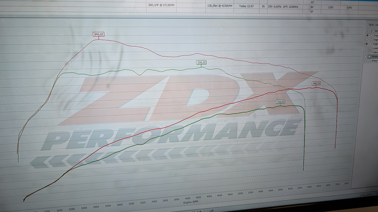Izstāstīšu elementāru lietu. Tos milzīgos Nm startā panāk paceļot turbo spiedienu, kas šajā gadījuma vispār nav vajadzīgs. Man nav vajadzīgi tie +150 un vairāk Nm, lai gan to pilnīgi brīvi varu realizēt. Par to var pārliecināties šajā jaudas stenda izdrukā. 645Nm pie 2400Rpm. Testam paskatījos cik var dabūt ar stock turbo. Tikai patīkamākam paātrinājumam, vienmērīgākam ir nepieciešams tas griezes momenta "plaukts". Nav tie muļķīgie dīzeļa Nm startā, kas tiešām ir kā sitiens pa transmisiju. Tāpēc turbo spiediens tiek ļoti vienmērīgi celts, startā atstājot stock spiedienu.