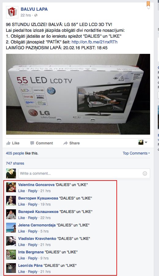 pirmām kārtām vispār ir prikols sekot tādām lapām un cerēt uz haļavniem televīzoriem, PC, telefoniem un naudas balvām