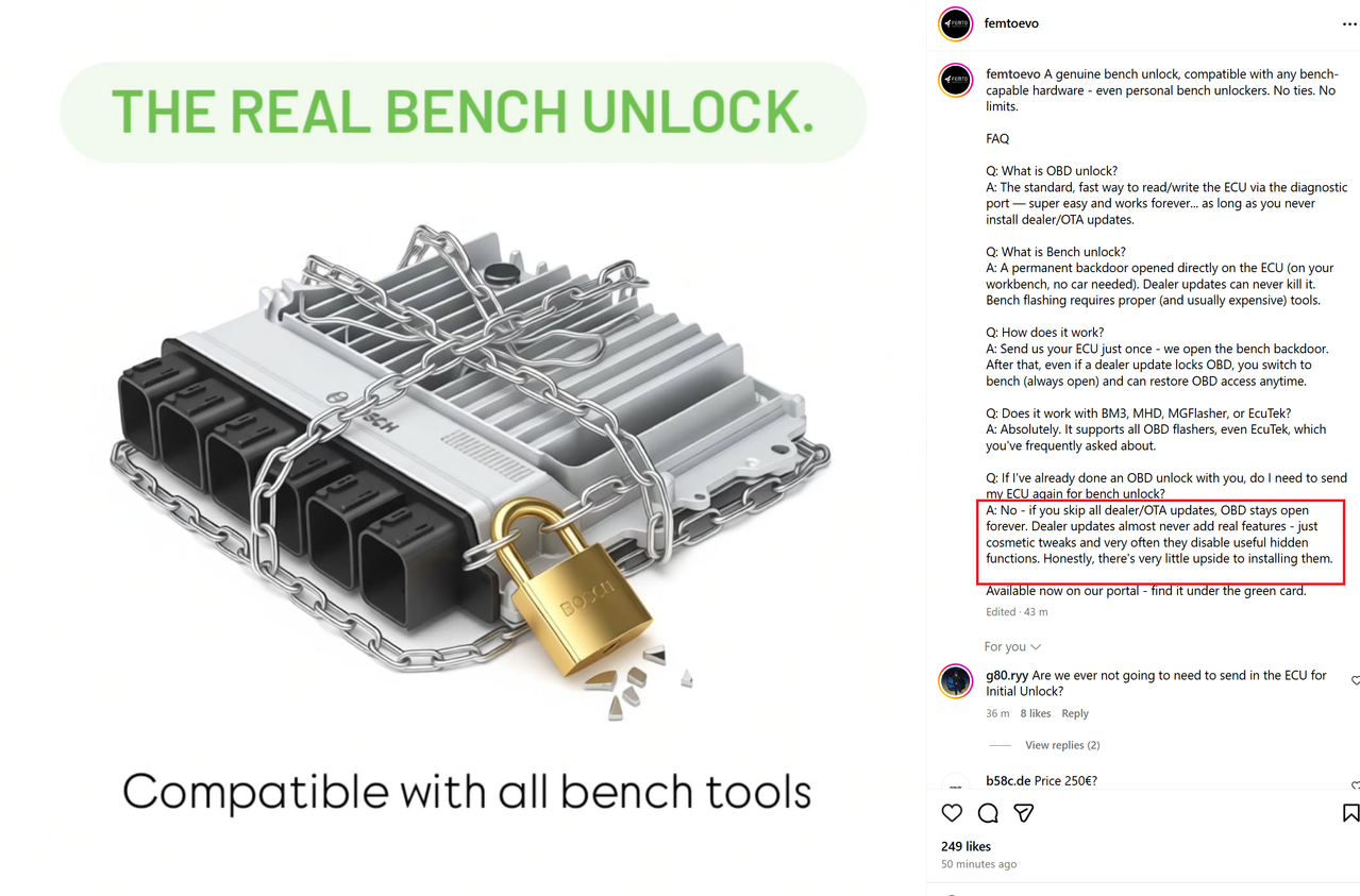 Femto kompānija, kas daudzus gadus bija vienīgā Pasaulē, kas piedāvāja Unlock. Viņi, protams, varētu sameloties un stāstīt, ka katrs dīlera update ir mega svarīgs un atkal pēlnīt vēl lielāku piķi uz katru nākamo unlock.