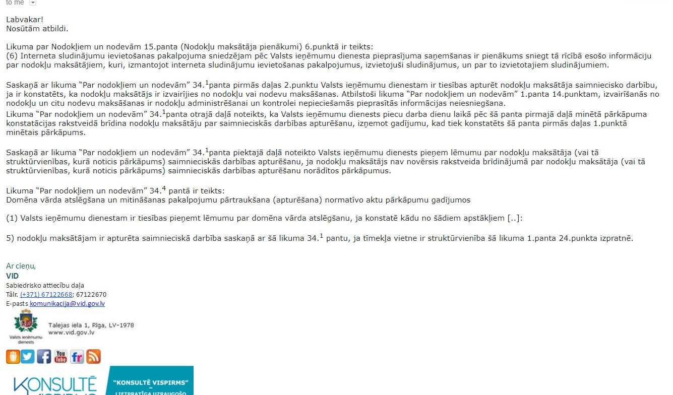 To likumu par darbības apturēšanu pieņēma nesen un VID tagad trenējas apturēt vietnes!  | Offline | | |