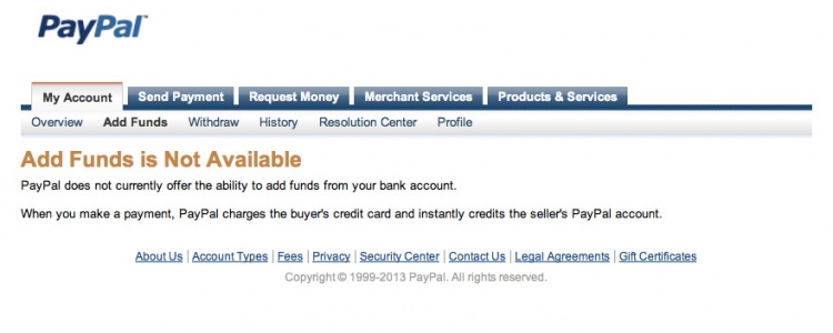 Nesaprotu problēmu (iespējams tāpēc, ka man nav ūsu un brūna portfeļa). Ja vēlies pirkt - nauda caur paypal kontu pārskaitās no kartes atbilstoši izvēlētajām opcijām. Ja vēlies pārdot - nauda no pircēja ienāk tavā paypal kontā un atrodas tajā, kamēr tu to pārskaiti uz savu karti vai citam paypal lietotājam. Bet kāda velna pēc ir nepieciešams, lai nauda paypal kontā vienkārši ir? | Offline | | |