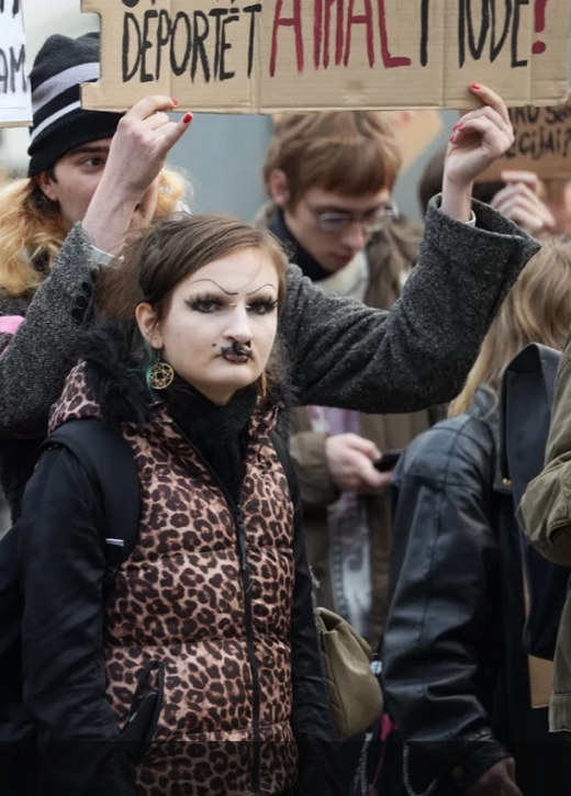 Nevaru uz sitienu to bildi atrast, bet viena protestētāja bija kažokā
